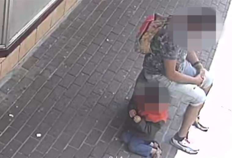 La cámara de seguridad de un local comercial captó la agresión de un papá venezolano contra su hijo, menor de edad, en vía pública en San José.