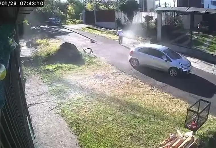 En las imágenes se observa cómo el hombre en marcha hacia atrás hacia la vía pública. Segundos después, un sujeto armado se baja de otro vehículo que estaba estacionado a pocos metros, se aproxima y le dispara en reiteradas ocasiones.