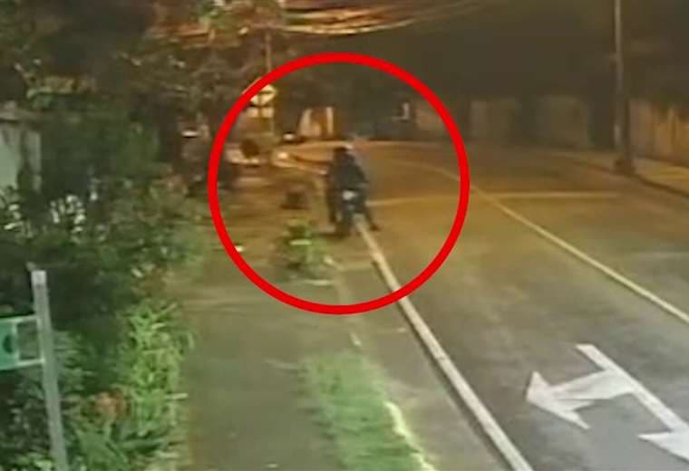 Una cámara de seguridad captó el momento exacto en que dos sujetos, a bordo de una motocicleta, dispararon contra una vivienda en Escazú durante la madrugada de este martes.