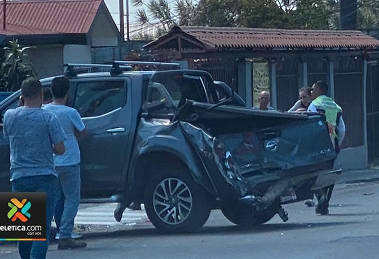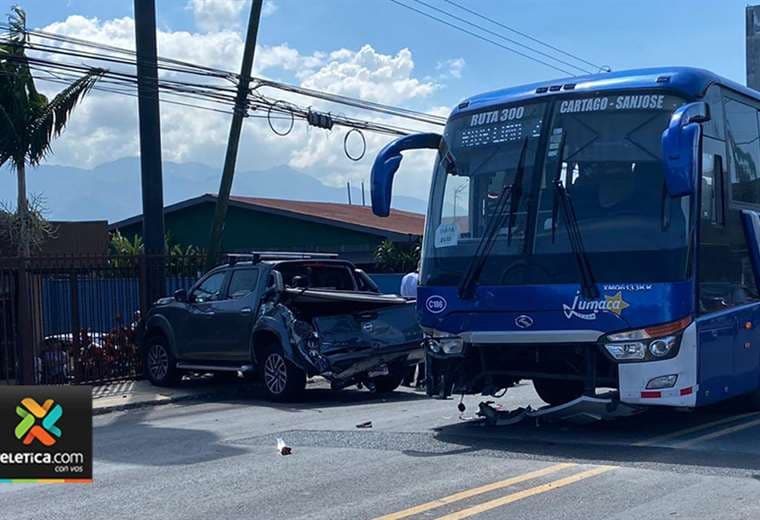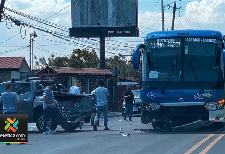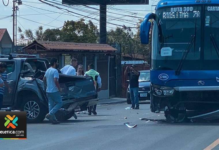 Una cámara de seguridad grabó el momento exacto en que ocurrió un triple choque entre un autobús, un vehículo pick up y un carro liviano en Curridabat.