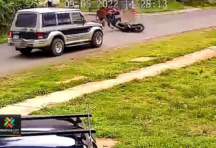 La peor parte del accidente captado por una cámara de seguridad la llevó el motociclista.