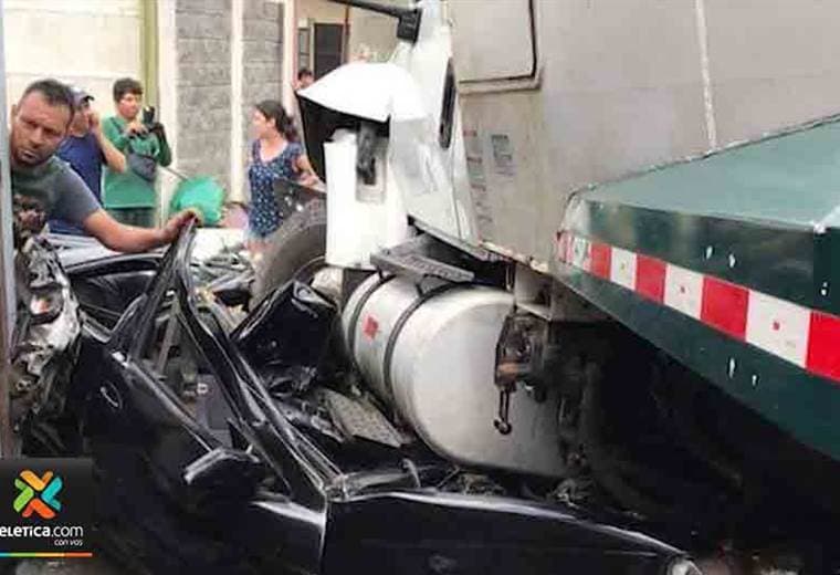 Camión de basura aplastó varios carros en Barreal de Heredia