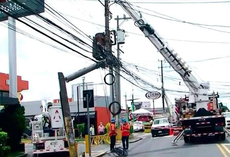 Un tráiler que circulaba por el distrito de Guadalupe, en Goicoechea, San José, derribó un poste de electricidad.