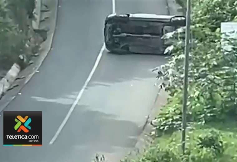 Un conductor captó el momento en el que un vehículo vuelca en una empinada cuesta en El Alto de Ochomogo en Cartago.