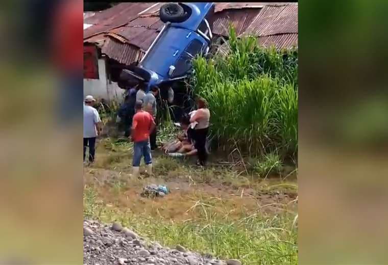 Por razones que se investigan, la conductora del vehículo tipo pick-up perdió el control, se salió de la carretera y dio varias vueltas hasta chocar contra la vivienda.