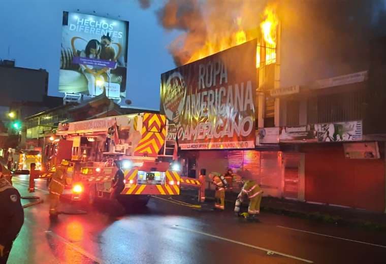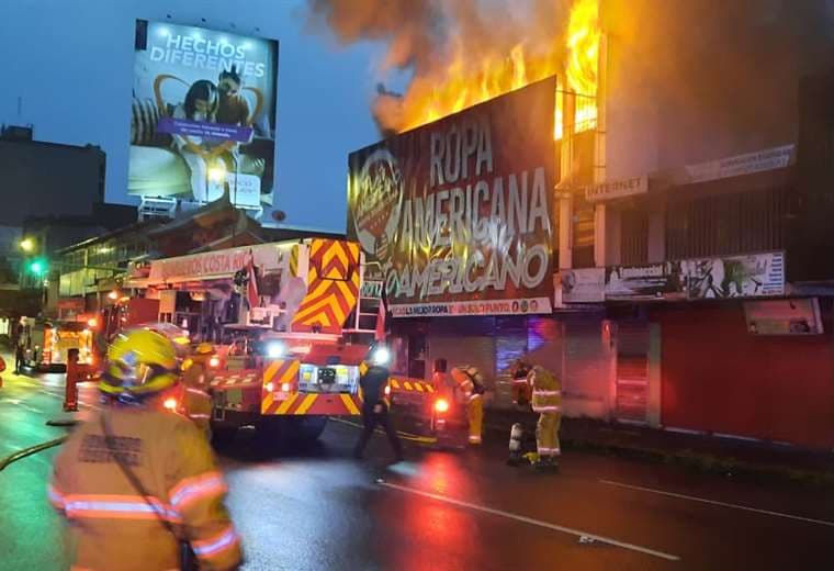 En la madrugada de hoy, al ser las 5:03 a. m., un incendio arrasó con una casa y una tienda de ropa americana, ubicadas en la Avenida 2, Calle 9, justo en la entrada del Barrio Chino, en San José centro.