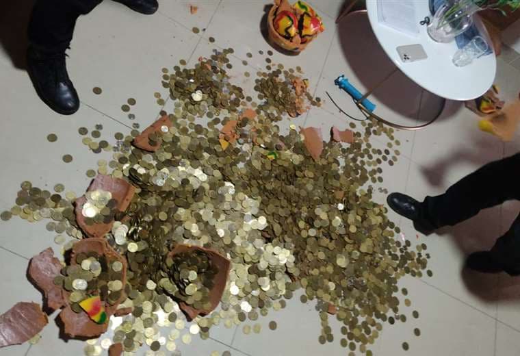Las alcancías, que estaban en María Reina, Sagrada Familia, tenían monedas de diferentes denominaciones: en apariencia, eran producto de la venta de drogas al menudeo.