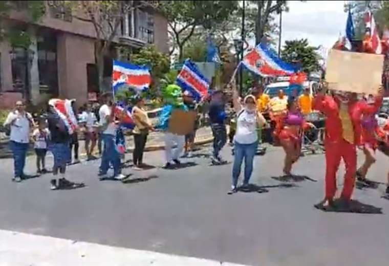 Se mantienen en los alrededores del nuevo edificio legislativo con pancartas, comparsa, bailarines y banderas de Costa Rica.
