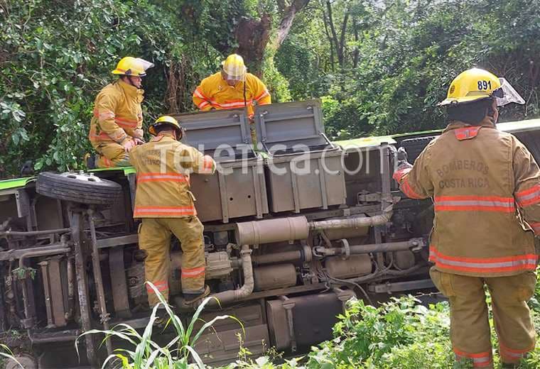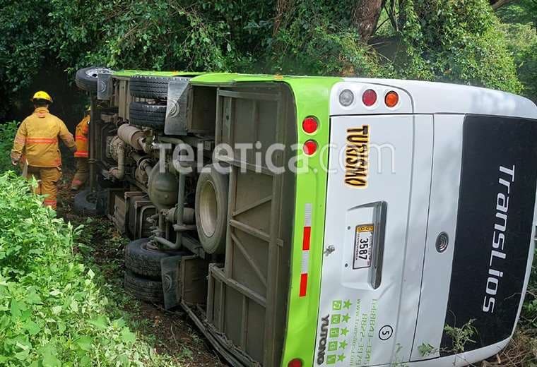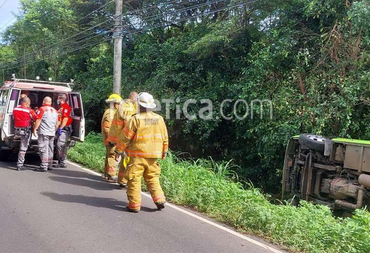 Chofer de buseta sale ileso tras sufrir vuelco en Carrillo