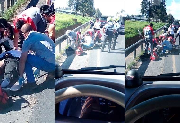 El oficial Villalta fue llevado al hospital Max Peralta, en Cartago, con condición delicada, pero consiente, presentaba golpes varios, escoriaciones y posible fractura, según agregó Marín.