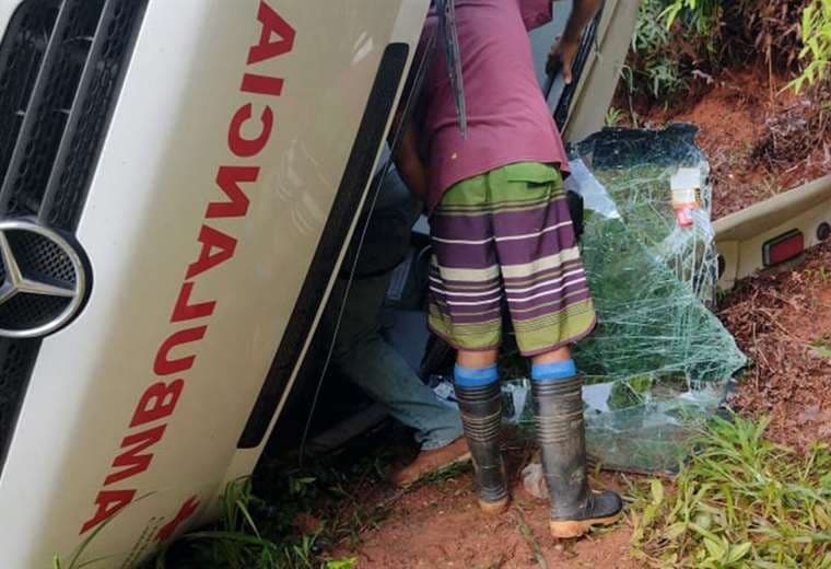El conductor de una ambulancia que volcó cuando transitaba por Sierpe en Osa, Puntarenas, fue trasladado de emergencia al centro médico.