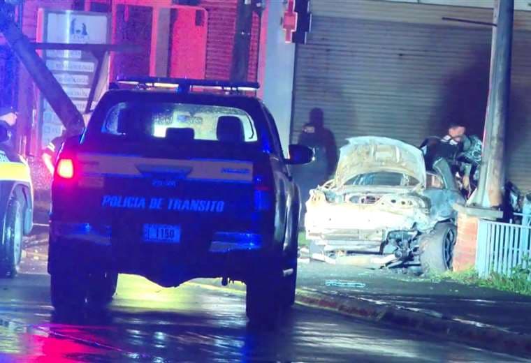 Choque de carro contra poste dejó dos personas graves en Goicoechea