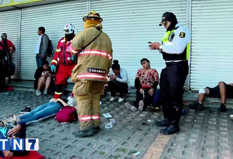La Cruz Roja, el Cuerpo de Bomberos y la Policía de Tránsito montaron operativo para trasladar a los afectados a tres centros médicos de la capital.