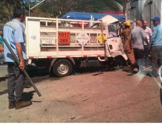 Uno de los vehículos que transportaba tanques con gas colisionó por detrás al otro, provocando que los tres pasajeros (hombres) que viajaban en el primer vehículo quedaran prensados por varios minutos.