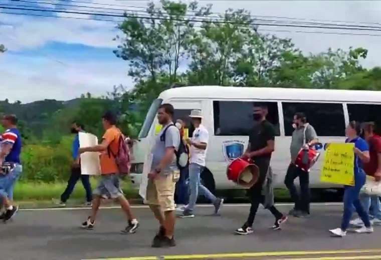 "En este momento, se realiza una marcha pacífica saliendo del Banco Nacional de Río Claro y llegando al puente de río Lagarto", indicó la Asociación de Concesionarios del Depósito Libre Comercial de Golfito (Acodelgo) a Teletica.com.