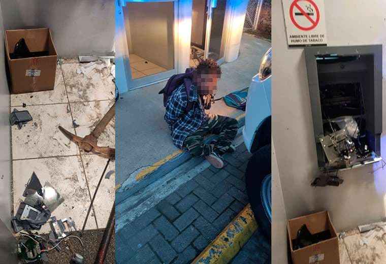 Al llegar al lugar, los oficiales presenciaron a un sujeto dentro del cajero, quien estaba utilizando un pico y una macana para destrozar parte del mismo con el objetivo de robar el dinero que contenía.