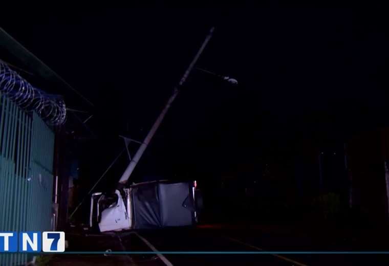Un vehículo impactó de manera aparatosa un poste del tendido eléctrico, la madrugada de este viernes, en San Antonio de Escazú.