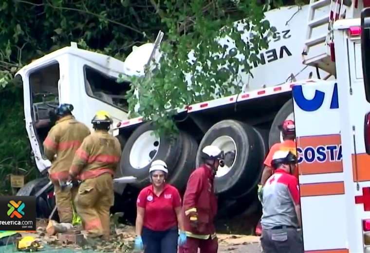 El conductor de una "chompipa" de concreto murió luego de estrellarse, aparatosamente, contra un paredón de tierra en Aserrí, San José.