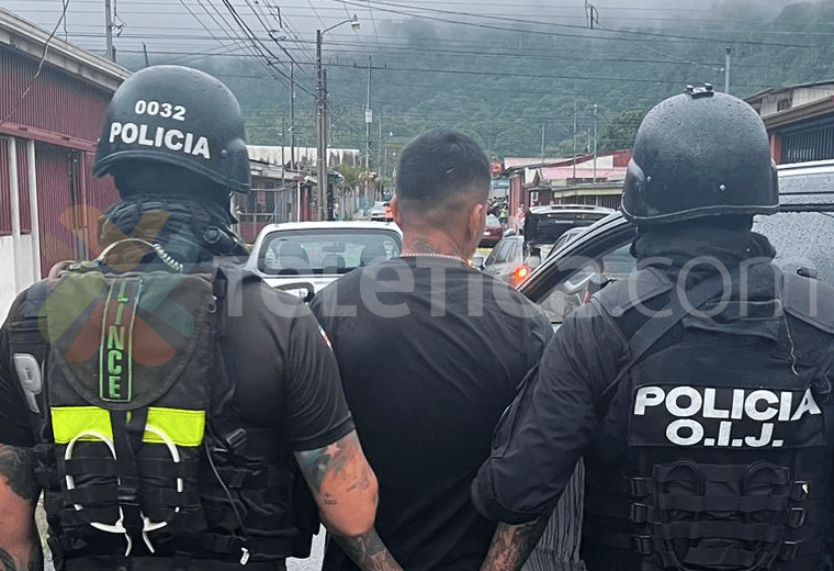 Los operativos se llevaron a cabo en la localidad de Barrio Verolis, Azul en Turrialba. El sospechoso, de apellidos Torres Flores y conocido como “Ángel de la muerte”, de 25 años, fue aprehendido en vía pública y trasladado a su vivienda para realizar el allanamiento.