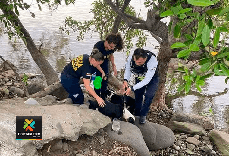 La Policía rescató a dos perros que estaban amarrados en el estero de La Angostura de Puntarenas.
