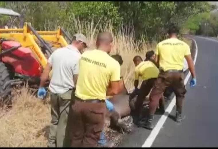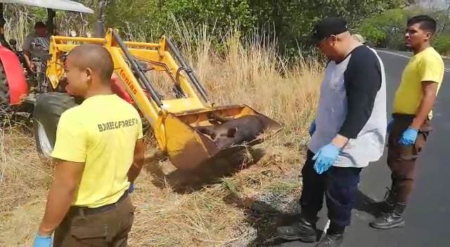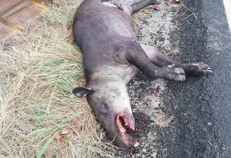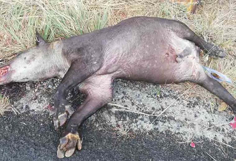 La bióloga del programa de investigación del ACG, María Marta Chavarría, aseguró que se trata de una danta adulta macho que, por las marcas de llantas en su cuerpo, se puede pensar que fue golpeada por un camión.