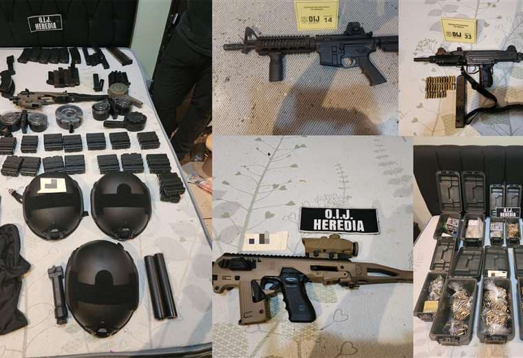 Decenas de armas que son utilizadas por los ejércitos en guerra fueron decomisadas durante un allanamiento en una casa en Heredia, el cual fue realizado en el transcurso del domingo y este lunes.
