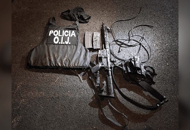 Agentes del Organismo de Investigación Judicial (OIJ) decomisaron fusiles de asalto, chalecos policiales, droga y dólares a los sospechosos de un tumbonazo en Alajuela.