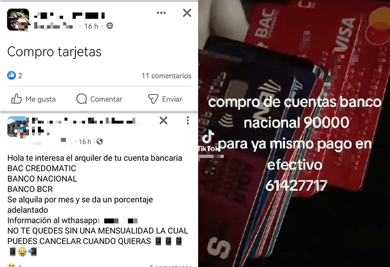 A través de las redes sociales, los delincuentes están ofreciendo hasta ₡100 mil para "comprar" o "alquilar" cuentas bancarias que luego utilizan para estafar.