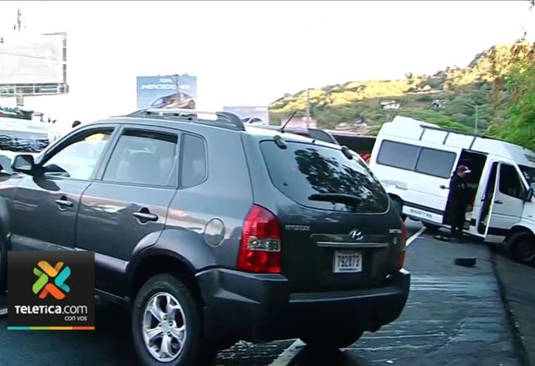 Al menos cuatro automotores se vieron involucrados en este accidente que ahorita mantiene cerrado un tramo de la Ruta 27 sentido San José- Santa Ana.