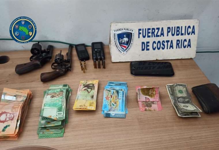 En ese momento, los policías lograron detenerlos y encontrar más de dos millones de colones, celulares, billeteras y armas de fuego.