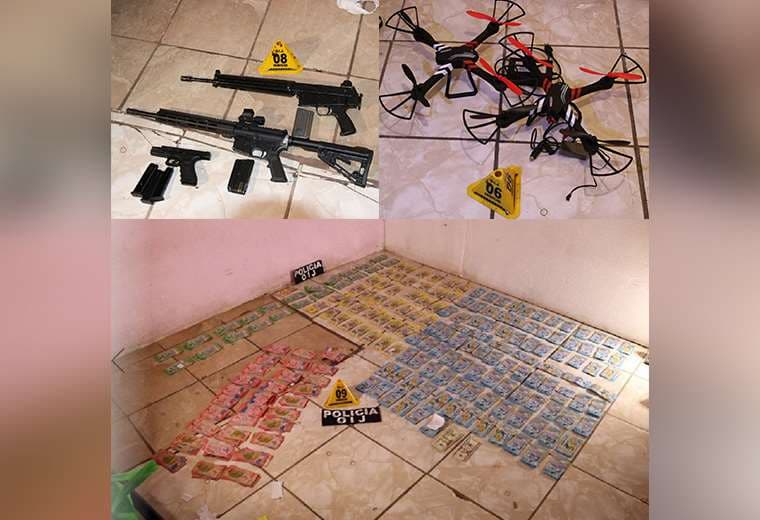 También se localizaron dos drones, más de 6 millones de colones y 70 dólares de dinero en efectivo; además de droga tipo cocaína, crack, marihuana, y otras no determinadas, que, en apariencia, serían sintéticas.