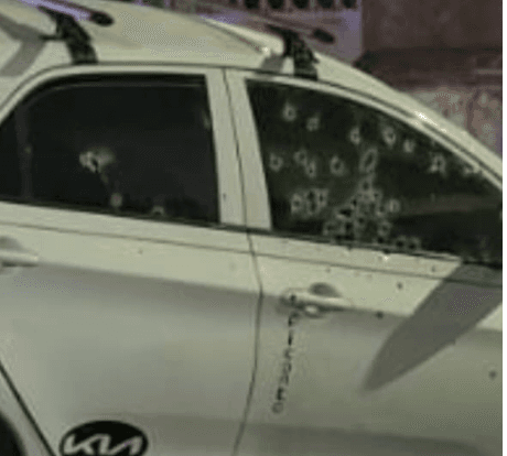 El vehículo quedó con numerosas perforaciones de bala en las ventanas, puertas y parabrisas, reflejo de la brutalidad del ataque.