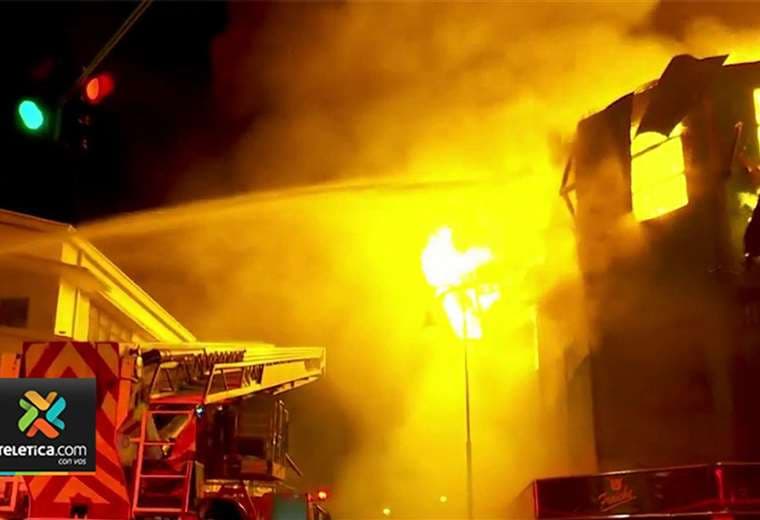 Dos personas murieron en un voraz incendio que afecta al Hotel Gran Paris, en San José. Así fue confirmado por Héctor Chaves, director del Cuerpo de Bomberos.