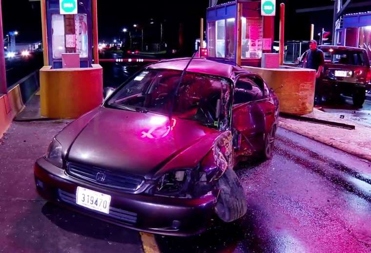 Dos vehículos colisionaron la madrugada de este domingo contra la caseta del peaje de Río Segundo en Alajuela.