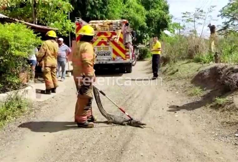 “Nos llaman y nos indican que hay un reptil dentro de una vivienda, cuando llegamos encontramos el animal dentro de la cochera de la casa y de inmediato lo capturamos y coordinamos con el SINAC para trasladarlo a un lugar seguro”, comentó Donald Vallejos del Cuerpo de Bomberos.