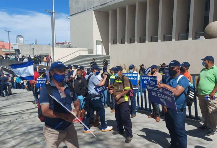 Desde las 9 a. m., en los alrededores del Congreso, hay funcionarios y dirigentes sindicales de la Asociación Nacional de Empleados Públicos y Privados (ANEP) de las municipalidades de Oreamuno, Coronado, Turrialba, Nandayure, Turrubares, Guatuso, Alajuela, Osa, Nicoya, Cartago, Belén, Flores, entre otras.