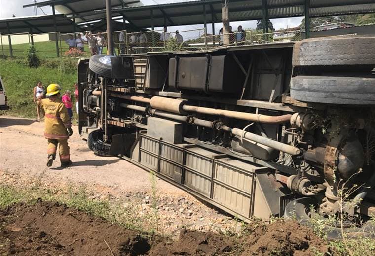 A las 12:14 p. m. se registra un segundo vuelco de una unidad que transportaba estudiantes en Oreamuno de Cartago.