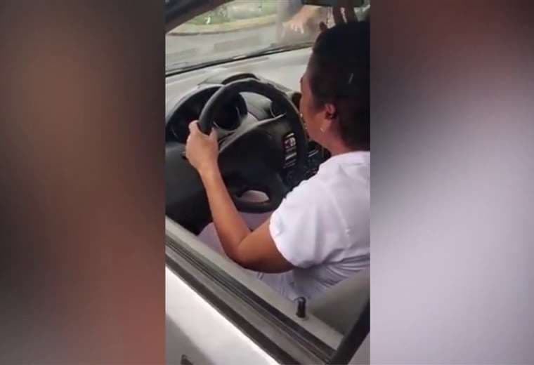 La mujer fue grabada por varios vecinos cuando intentaba cruzar con su carro, entre lágrimas, la zona de disturbios para poder llegar.