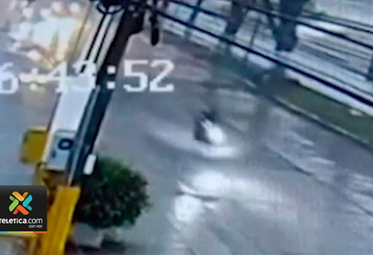 Como se aprecia en el video, cuando el motociclista pasa, el cajón de la moto se le desprende tras el impacto.