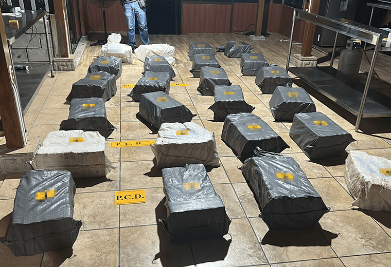 Autoridades nacionales decomisaron 584 kilogramos de cocaína ocultos en una bodega cerca de playa Bonita, en el cantón central de Limón.