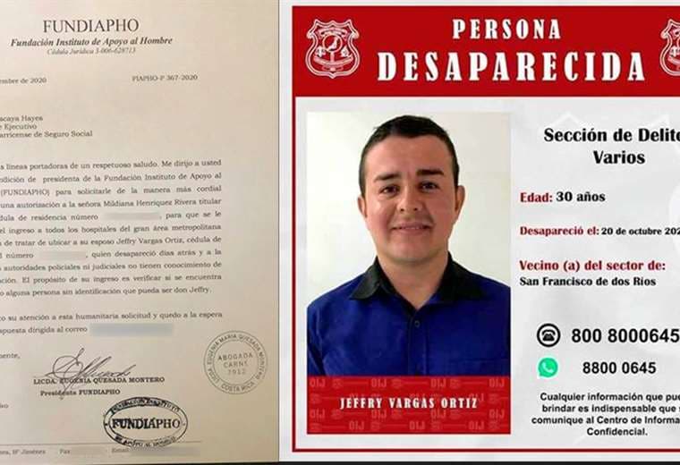 Mildiana Henriquez Rivera, esposa del mensajero desaparecido, Jeffry Vargas, envió una solicitud por escrito a Román Macaya, presidente de la Caja Costarricense de Seguro Social (CCSS), con el fin de que se le permita ingresar a todos los hospitales de la Gran Área Metropolitana para verificar si su pareja se encuentra internado, por algún motivo, y se desconozca su identificación.