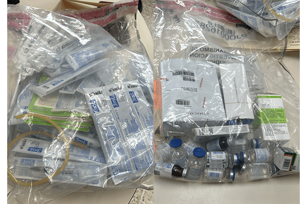 Durante la diligencia policial, se logró el decomiso de gran cantidad de medicamentos de uso veterinario.
