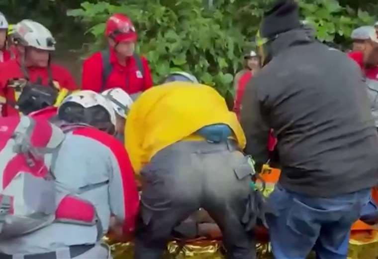 La labor de extracción duró más de nueve horas producto de la topografía y el clima: terreno muy quebrado y mucha lluvia acompañaron a los rescatistas durante toda la noche.