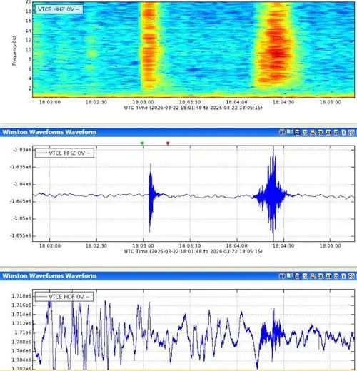 La señal fue detectada a las 12:03 p. m. por medio de sismógrafos y sensores acústicos de infrasonido instalados en el macizo.