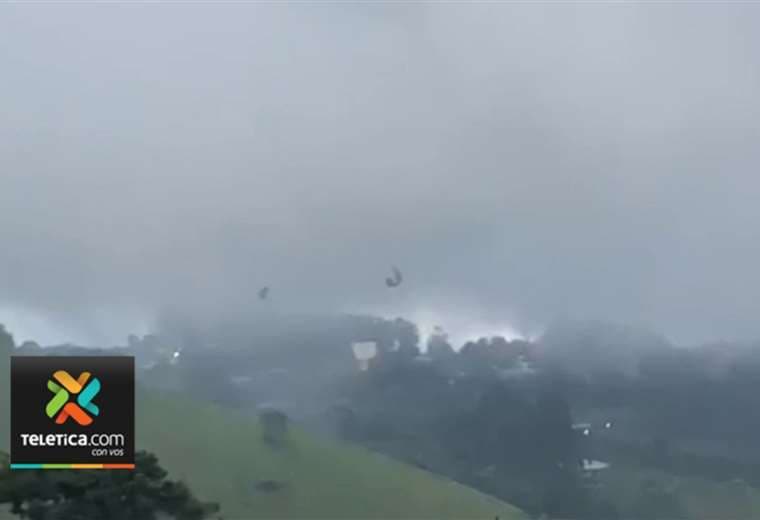En las imágenes se observan algunas láminas de zinc que fueron arrancadas por la intensidad de los vientos de ese momento y de acuerdo con Instituto Meteorológico Nacional (IMN), este proceso es la etapa previa de la formación de un torbellino.