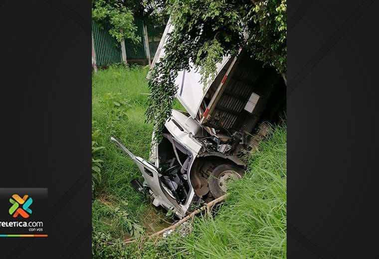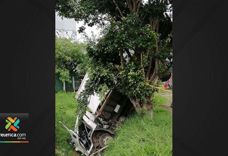 El conductor de un camión perdió el control del vehículo y terminó incrustado sobre un árbol en la autopista Florencio del Castillo.