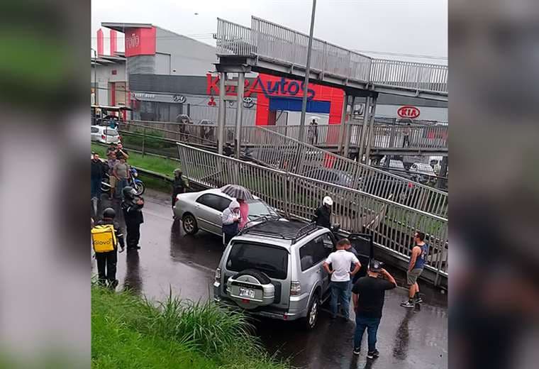 Una grúa chocó contra un puente peatonal y ocasionó que este colapsara encima de varios carros en la Ruta 39, Circunvalación.