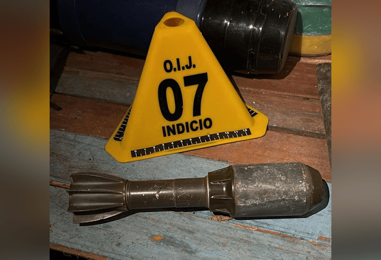 Una bomba para mortero fue localizada por el Organismo de Investigación Judicial (OIJ) durante los allanamientos realizados este miércoles en distintas zonas del país, en un operativo para desarticular la estructura criminal conocida como “Los Myrie”.