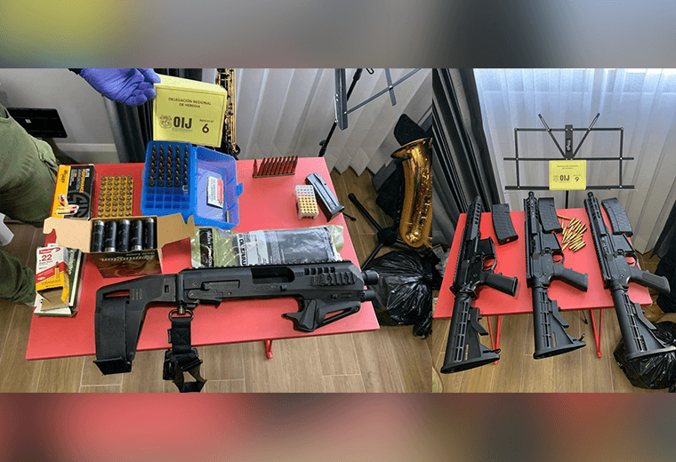 La Policía Judicial decomisó en total 11 armas de fuego: cuatro pistolas, cuatro fusiles de asalto AR-15, una escopeta, una carabina y un rifle de precisión, así como municiones para arma de fuego, camisas falsificadas de la Policía de Migración y unas esposas del Ministerio de Seguridad Pública.
