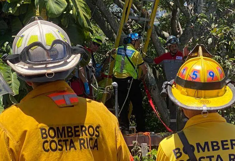 El incidente se reportó específicamente frente a un comercio ubicado sobre la vía principal en San Rafael de Escazú, donde la víctima quedó suspendida a aproximadamente 15 metros de altura tras el contacto con el tendido eléctrico.